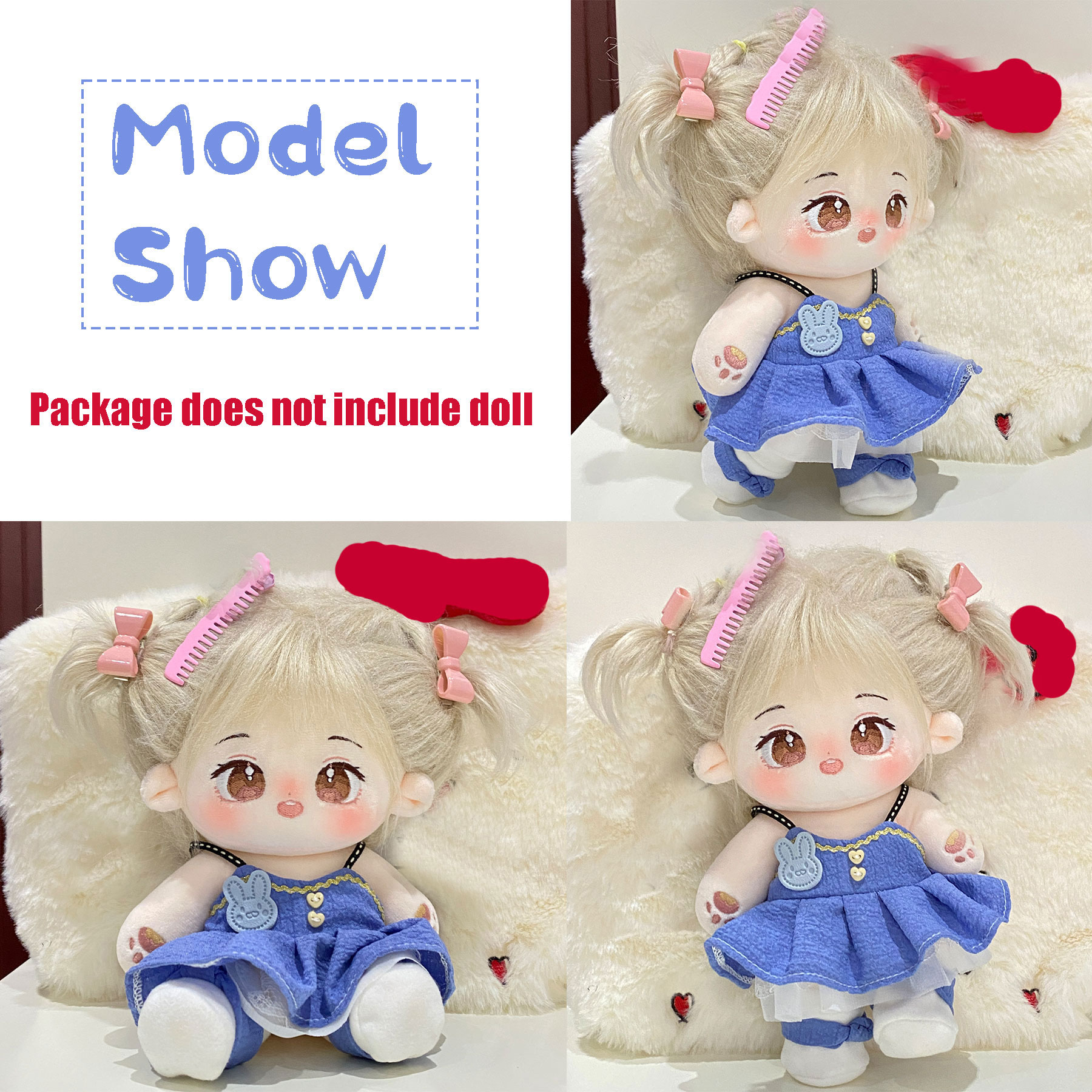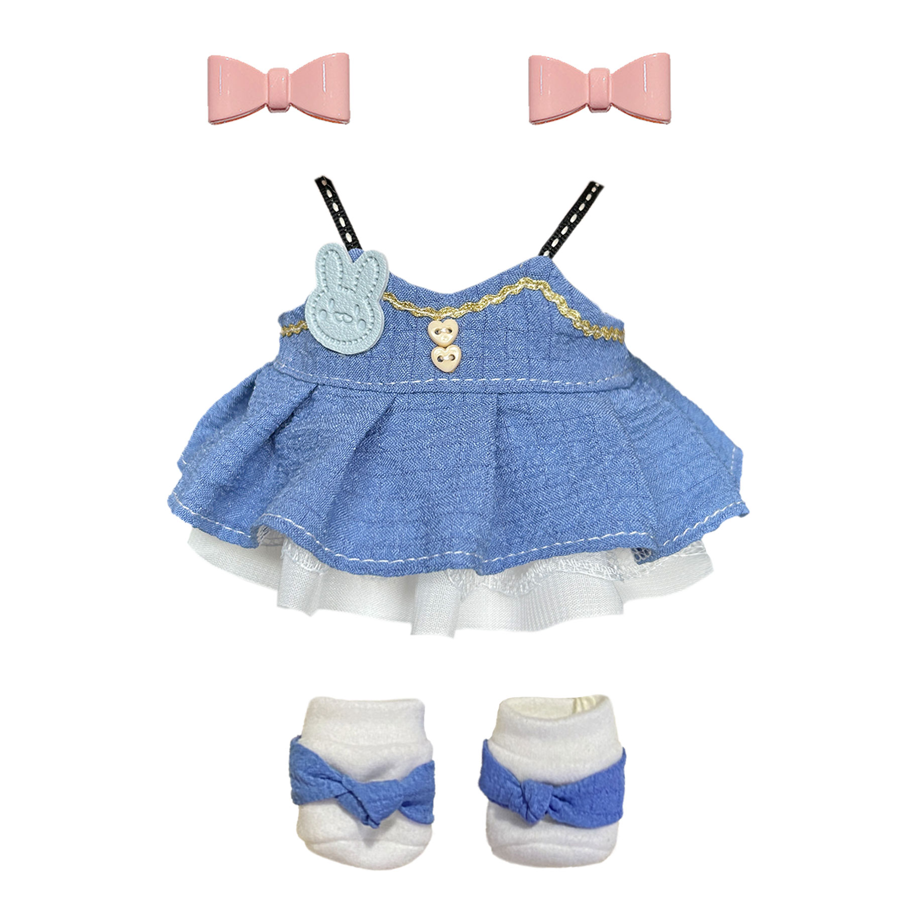 3 Pcs Of Cotton Doll Clothes Sets ,Include Bow+Dress+Bag, fits 20cm Plush Dolls
