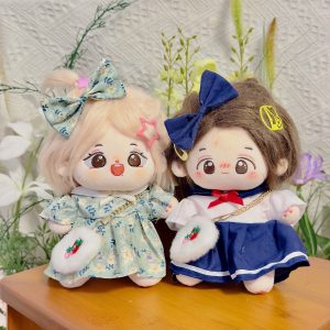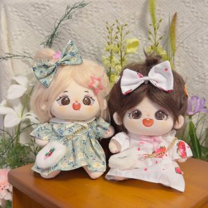3 Pcs Of Cotton Doll Clothes Sets -Include Bow+2 Dress+Shoes, fits 20cm Plush Dolls