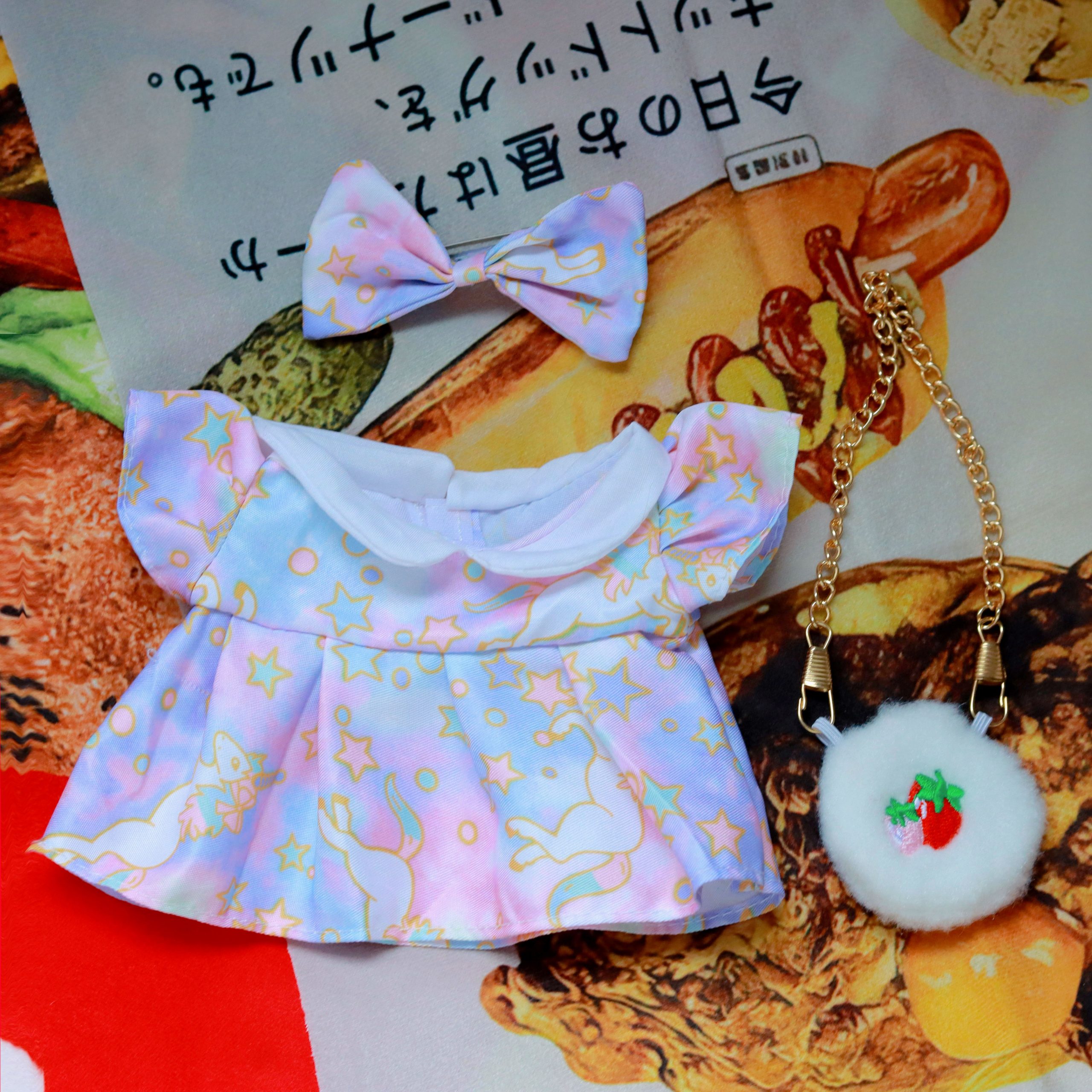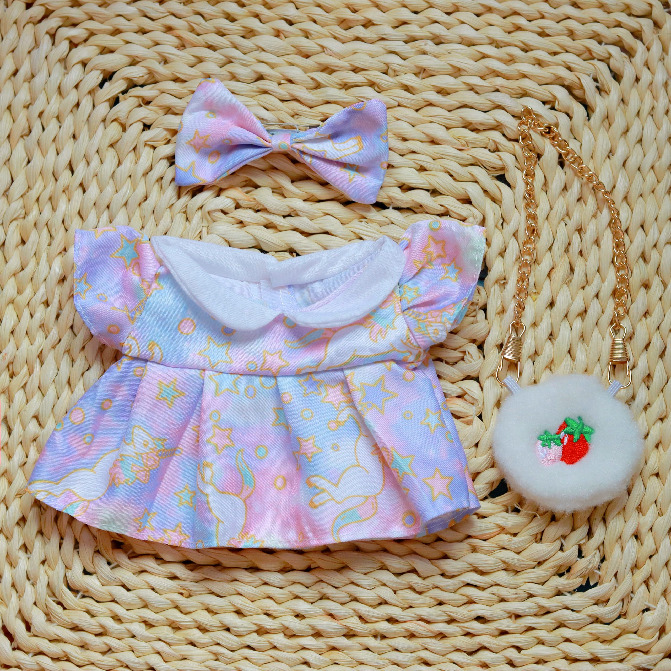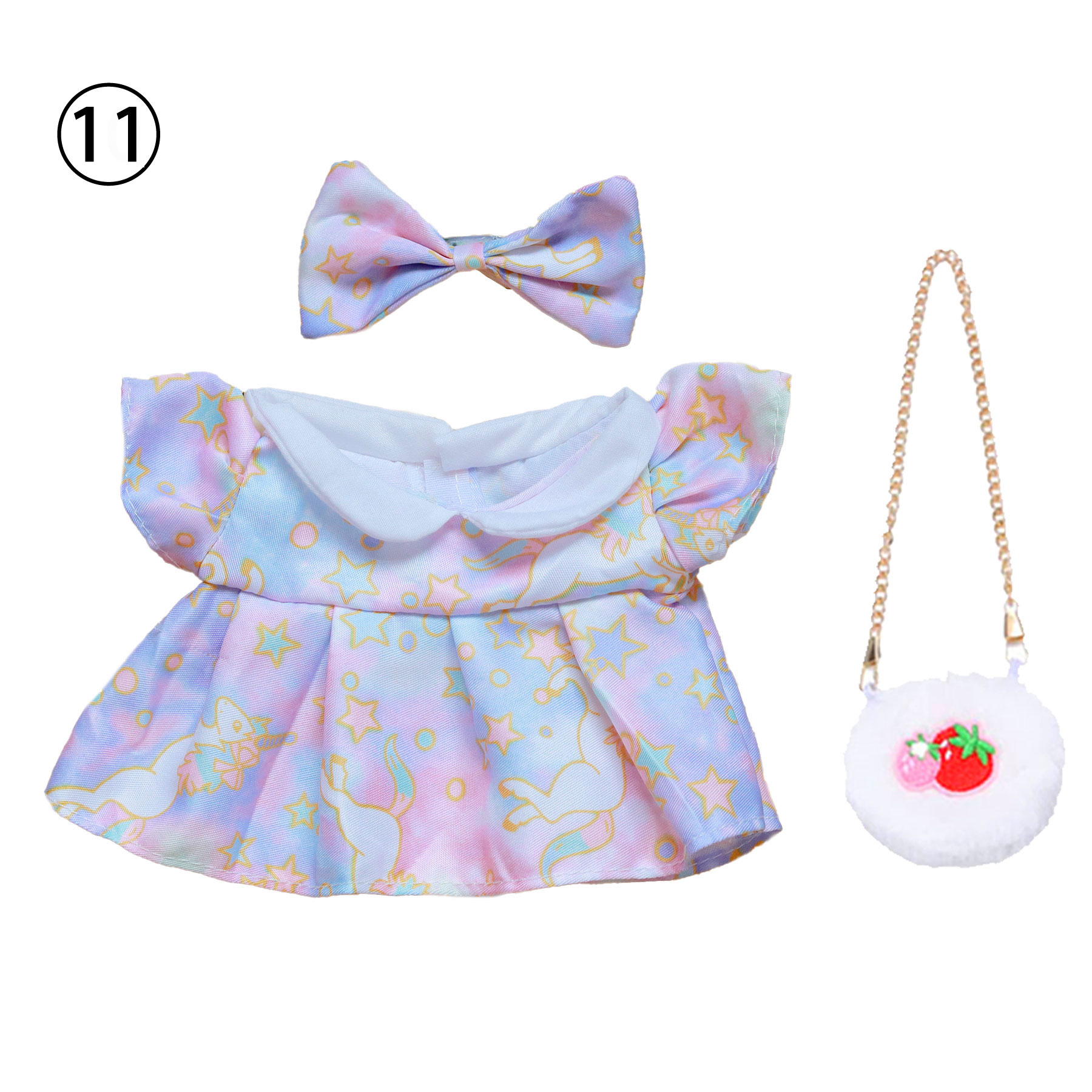 3 Pcs Of Cotton Doll Clothes Sets ,Include Bow+Dress+Bag, fits 20cm Plush Dolls