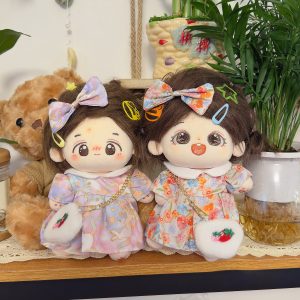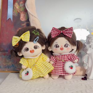 3 Pcs Of Cotton Doll Clothes Sets -Include Bow+2 Dress+Shoes, fits 20cm Plush Dolls