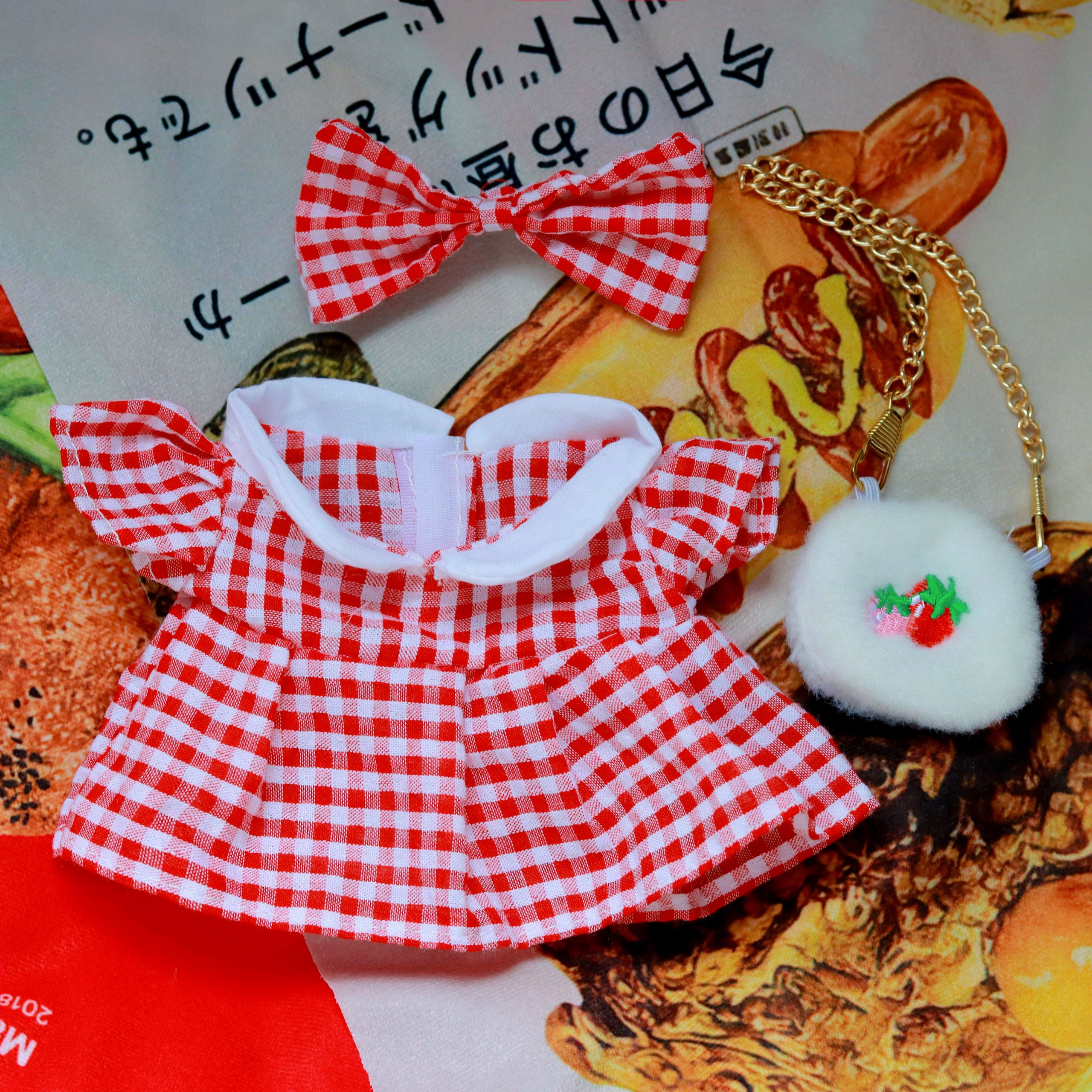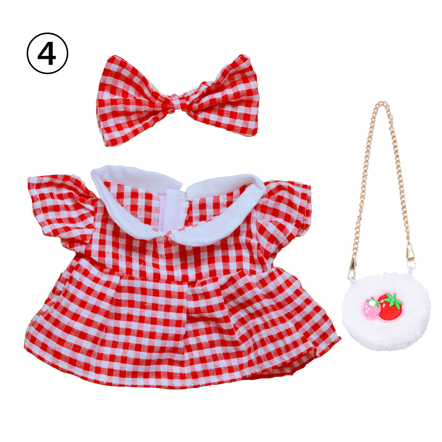 3 Pcs Of Cotton Doll Clothes Sets ,Include Bow+Dress+Bag, fits 20cm Plush Dolls