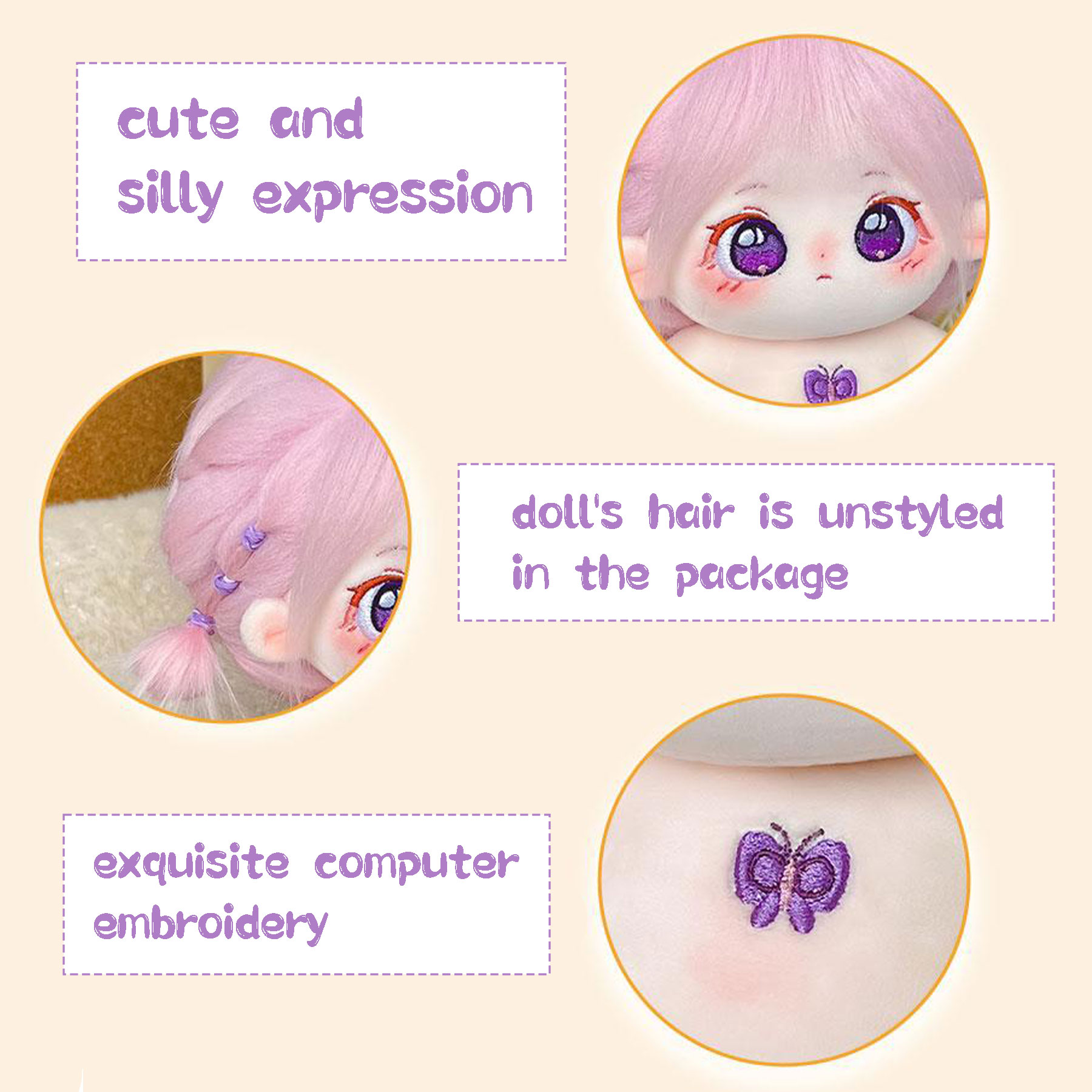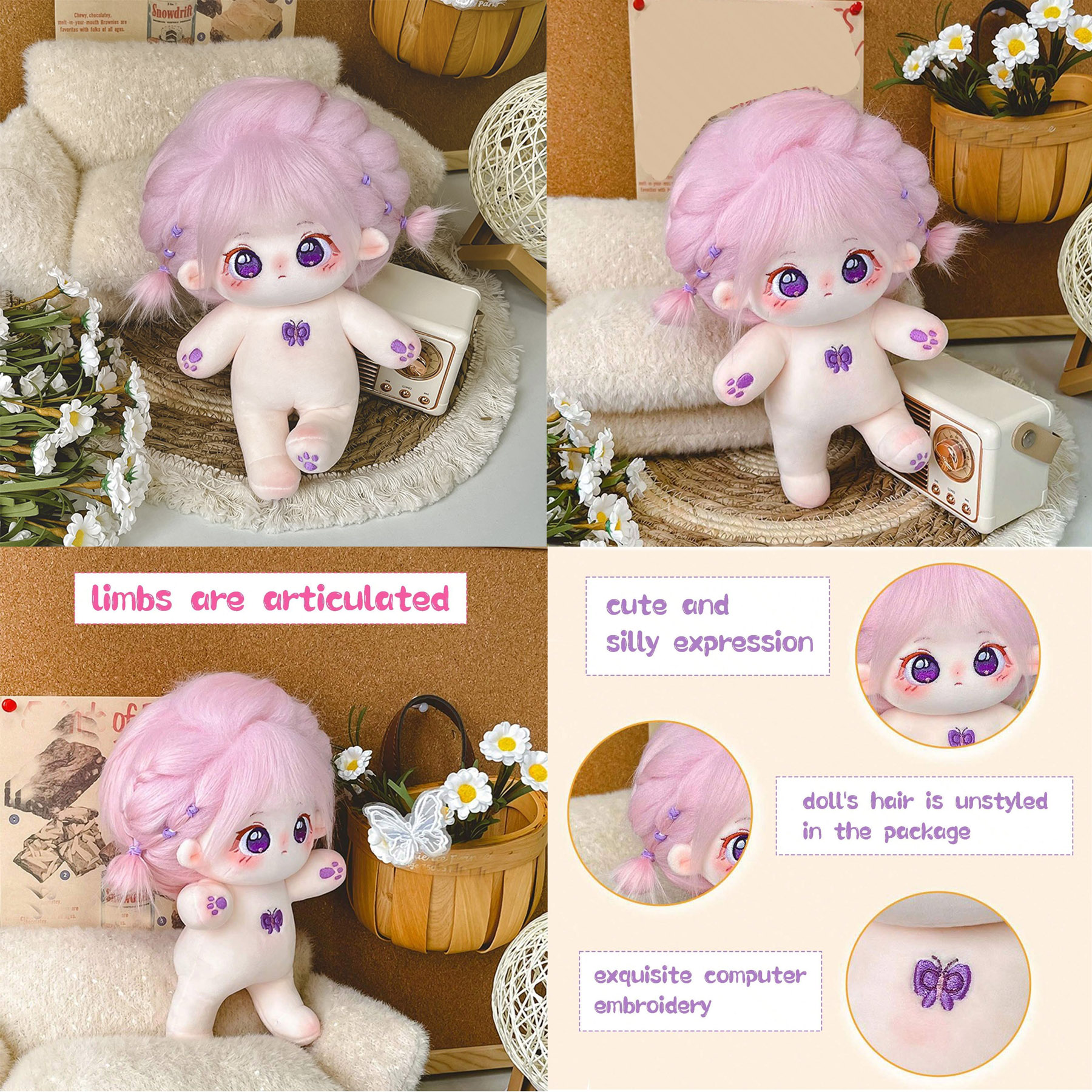 Wardrobe Versatility: Designed to fit standard 20cm doll clothes, this plush doll can wear outfits made for BJDs, anime plushies, SKZOO dolls, and more. Mix and match styles for endless fashion fun!